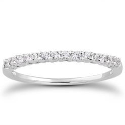 14k White Gold Curved Style Pave Diamond Wedding Ring (1/6 cttw)