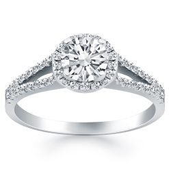14k White Gold Diamond Halo Split Shank Engagement Ring