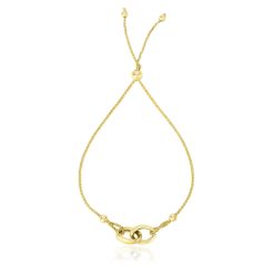 14k Yellow Gold Entwined Rings Adjustable Lariat Style Bracelet