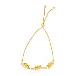 14k Yellow Gold Elephant Station Lariat Style Bracelet