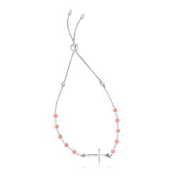 Sterling Silver White and Rose Finish Adjustable Bracelet with Cross