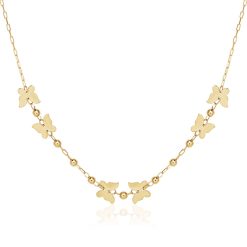 14k Yellow Gold 18 inch Necklace with Polished Butterflies and Beads