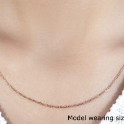 This diamond cut cable link chain comes in 14k rose gold and has a width of 1.3 millimeters.