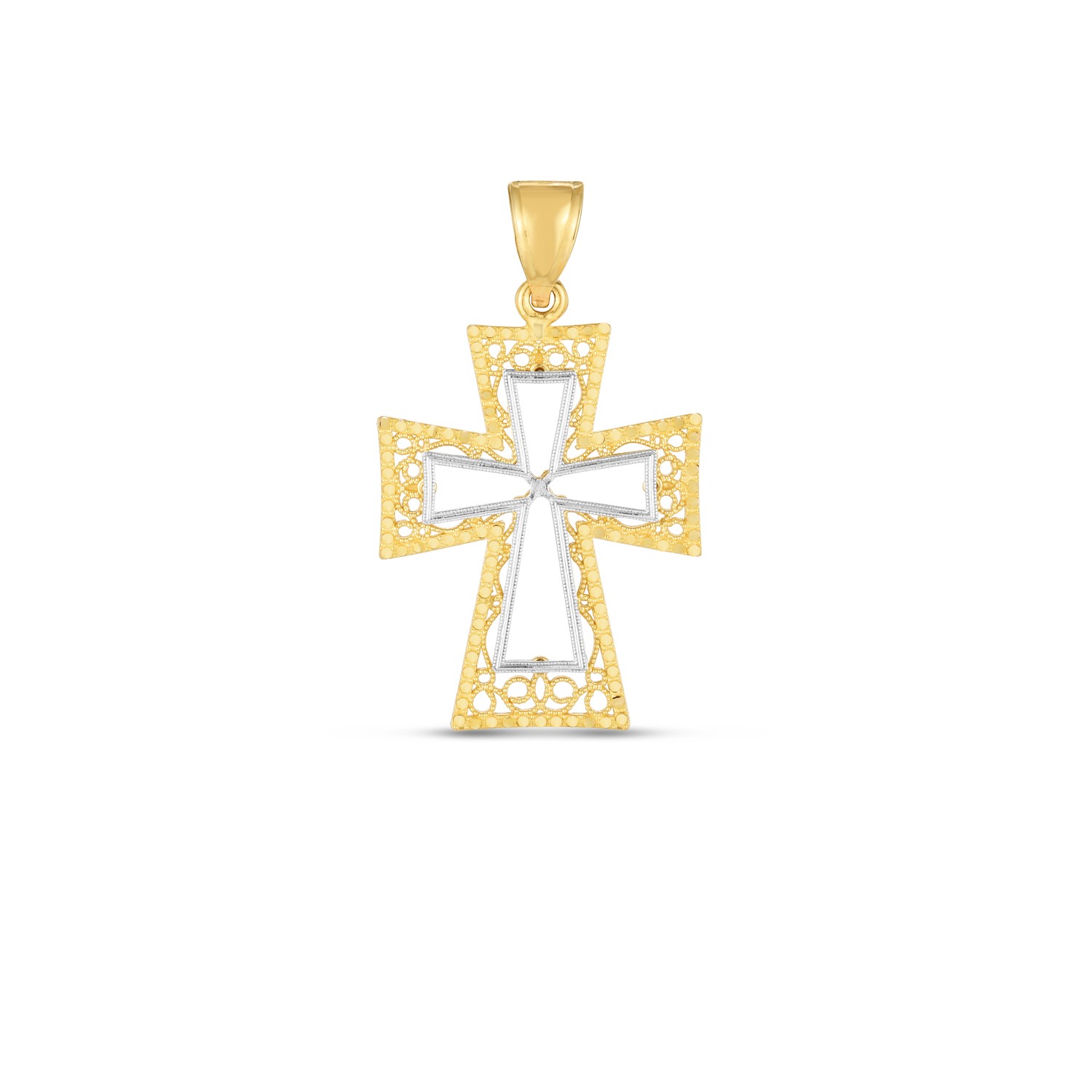 14k Two Tone Gold High Polish Diamond Cut Cross Pendant