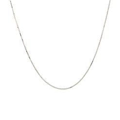 This classic box chain comes in 14k white gold and has a width of 0.45 millimeters.