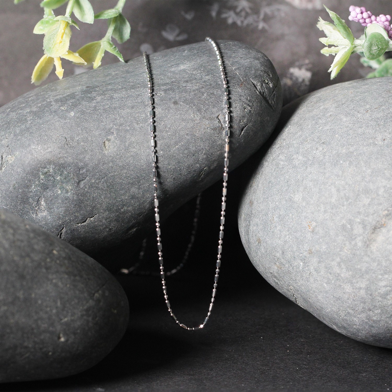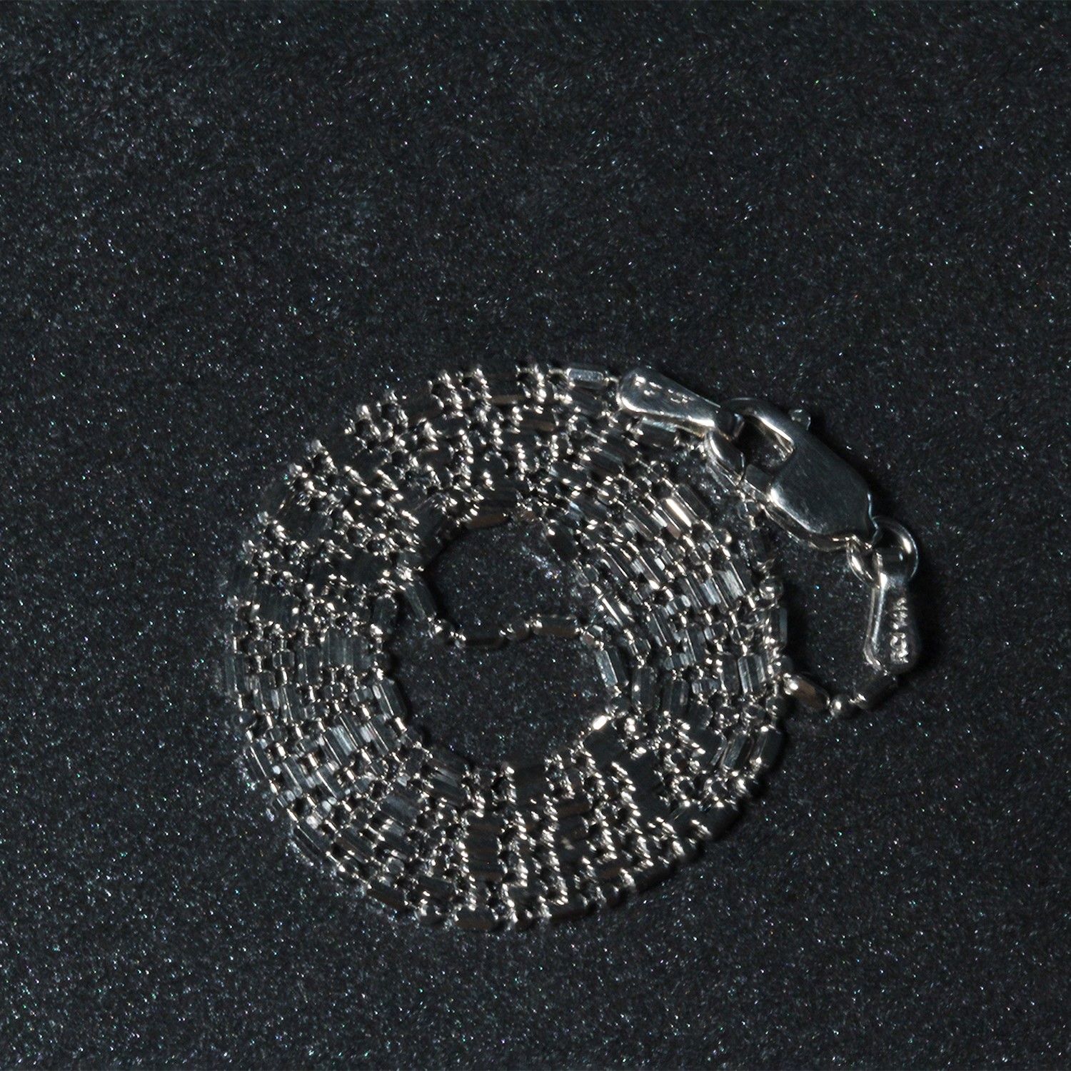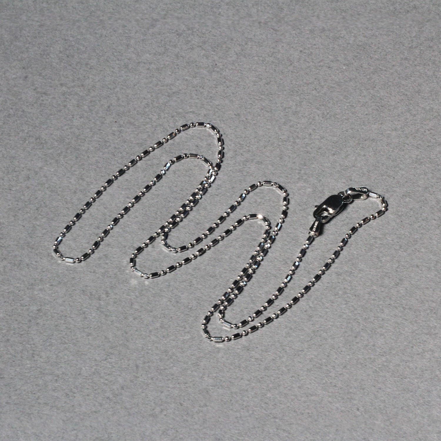 This diamond cut bead chain comes in 14k white gold and has a width of 1.0 millimeters.
