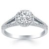 14k White Gold Diamond Halo Collar Engagement Ring