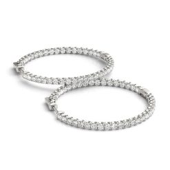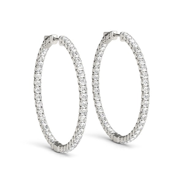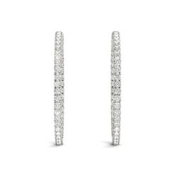 14k White Gold Diamond Hoop Earrings with Shared Prong Setting (2 cttw)