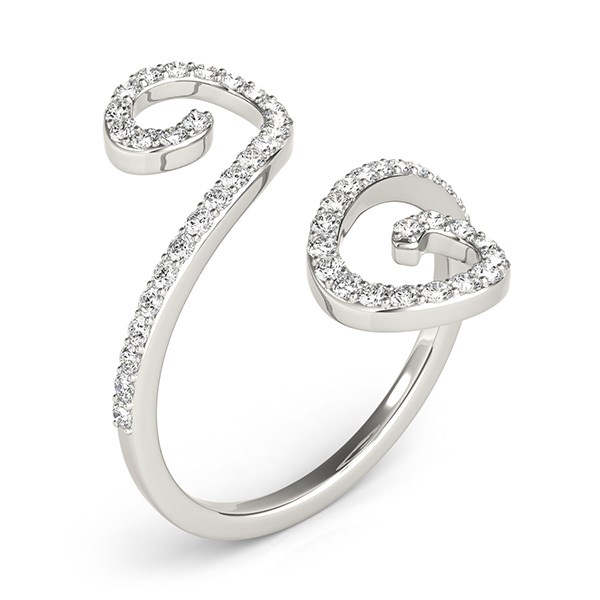Intricately set diamonds highlight the sophisticated elegance and appeal of this open design ring featuring an eye-catching curly flourish style&44; this beautifully crafted in 14k white gold.