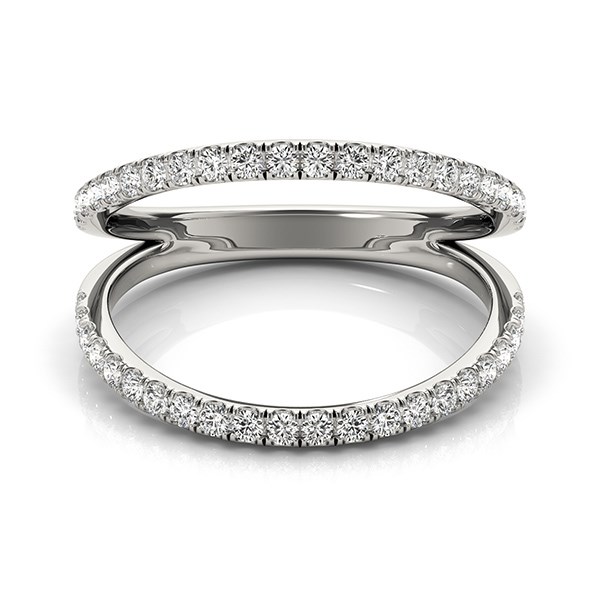 Utterly stunning in 14k white gold&44; this ring features pave set diamonds. A delightful beauty with a fashionable dual band design.