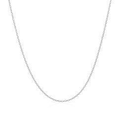 This oval cable link chain comes in 14k white gold and has a width of 0.7 millimeters.