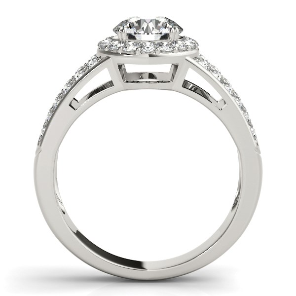 Beautifully designed in 14k white gold&44; this round cut diamond engagement ring showcases a pave set halo and split shank.