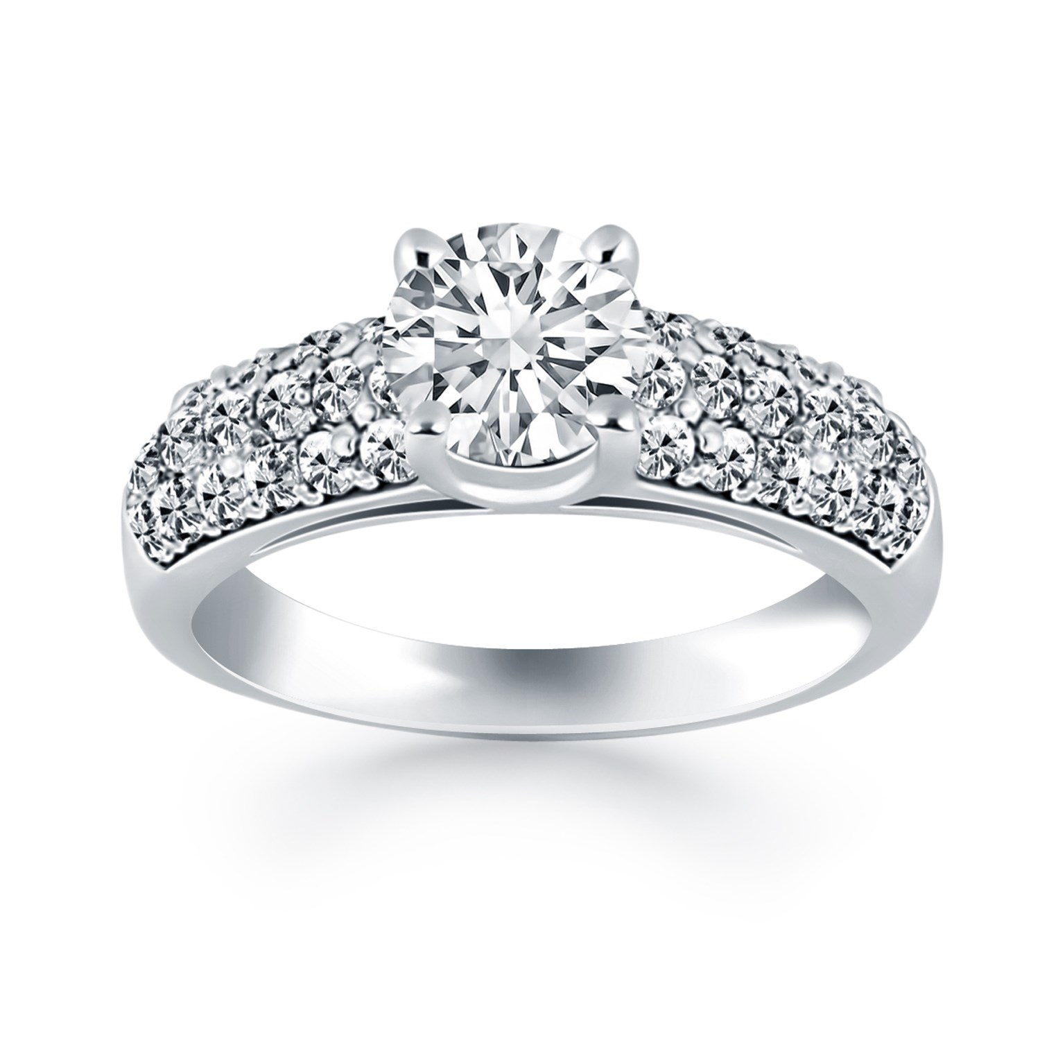 14k White Gold Tapered Pave Diamond Wide Band Engagement Ring