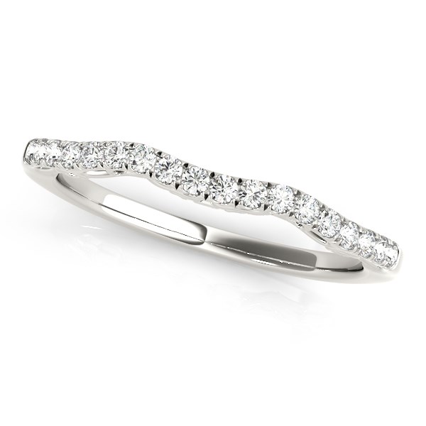 A darling wave design wedding band with pave set round diamonds. Positively gorgeous in 14k white gold.