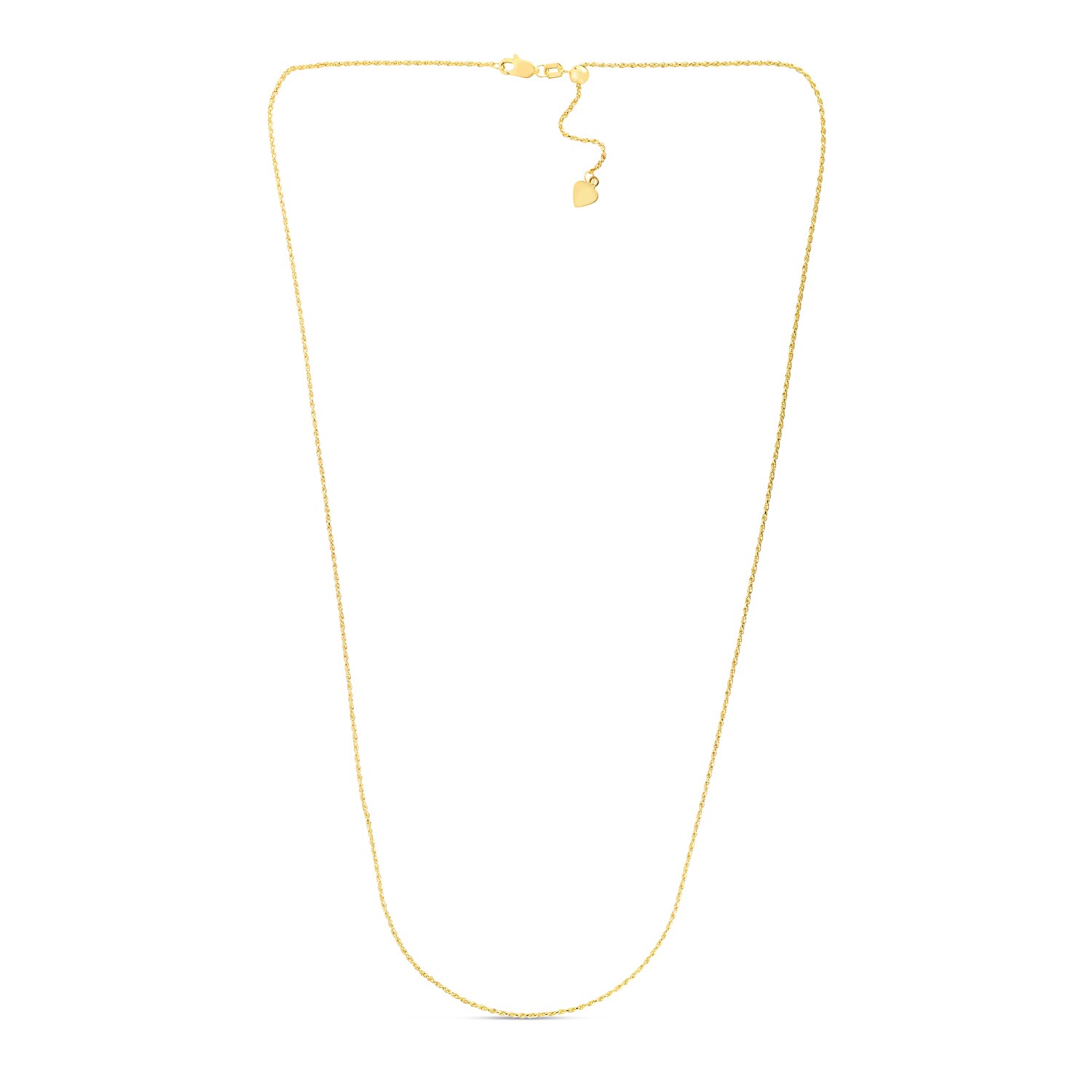 Crafted in 14k yellow gold&44; this adjustable rope chain measures a width of 1.0 millimeters and features a heart dangle accent. The chain is adjustable up to 22 inches and is fastened securely with a lobster clasp.