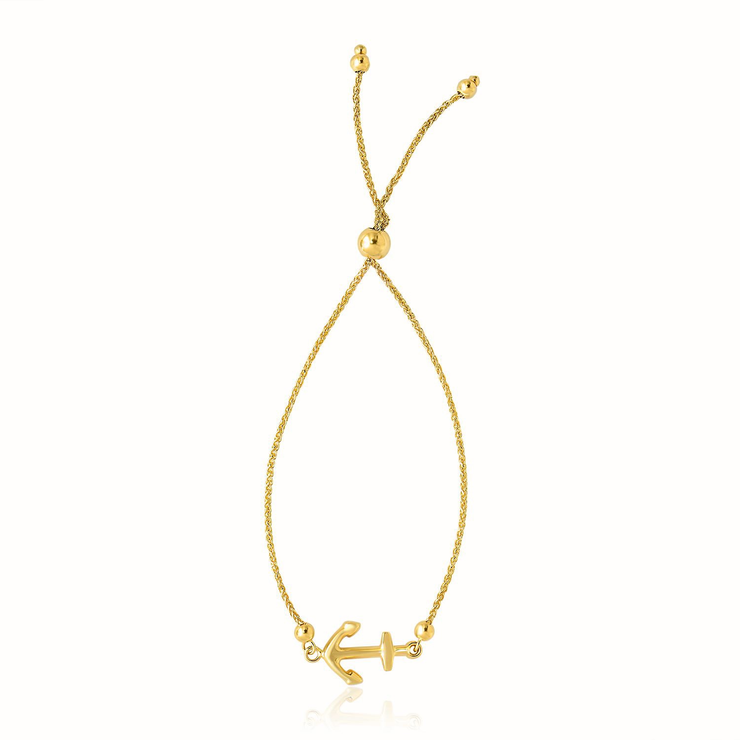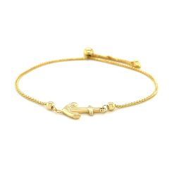 14k Yellow Gold Anchor Design Adjustable Lariat Bracelet