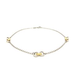 This anklet designed in superb 14k yellow gold and sterling silver. Measuring 10 Inches&44; this beauty comes with triple entwined ring stations and is secured with a lobster lock.