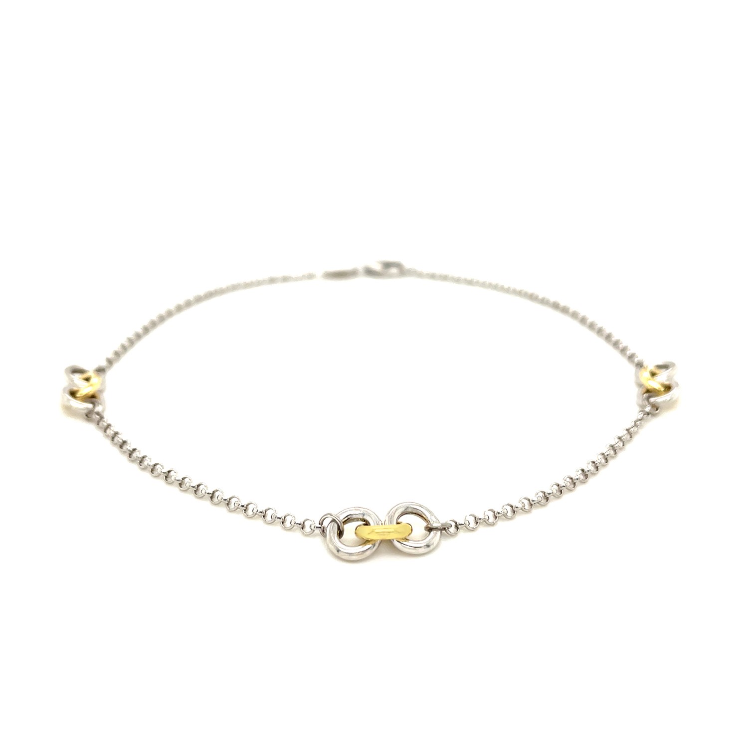 14k Yellow Gold and Sterling Silver Triple Ring Stationed Anklet