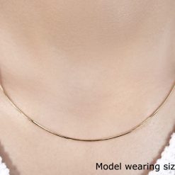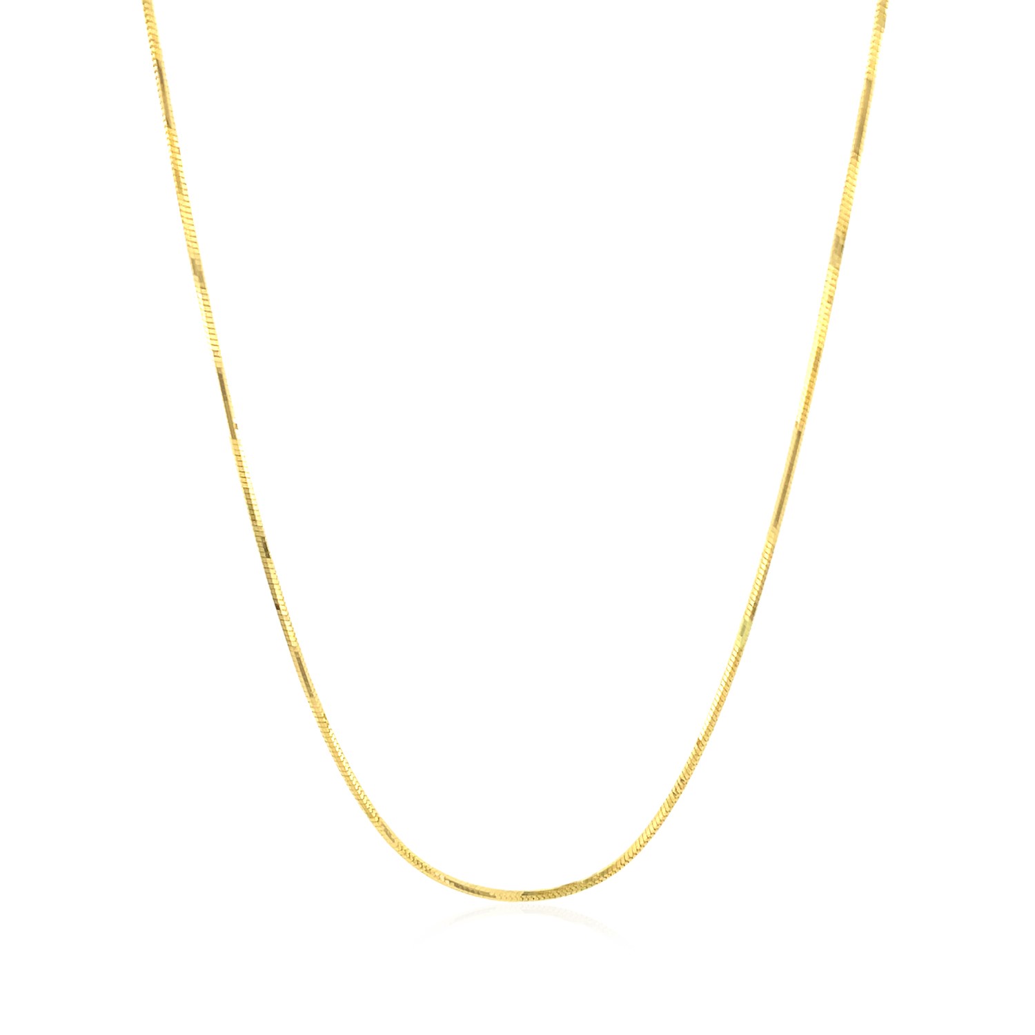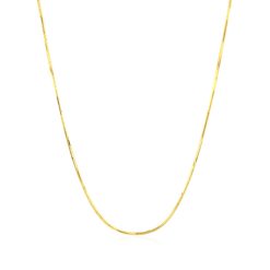 This octagonal shiny snake chain comes in 14k yellow gold and has a width of 0.8 millimeters.