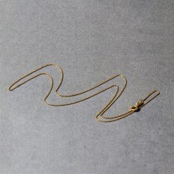 This oval cable link chain comes in 14k yellow gold and has a width of 0.85 millimeters.
