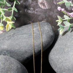 This oval cable link chain comes in 14k yellow gold and has a width of 1.0 millimeters.