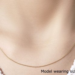 This round cable link chain comes in 14k yellow gold and has a width of 0.7 millimeters.