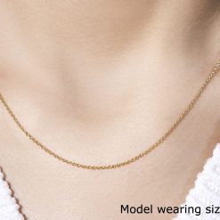 This round cable link chain comes in 14k yellow gold and has a width of 1.3 millimeters.