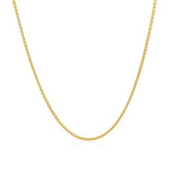 This round wheat chain comes in 14k yellow gold and has a width of 1.2 millimeters.