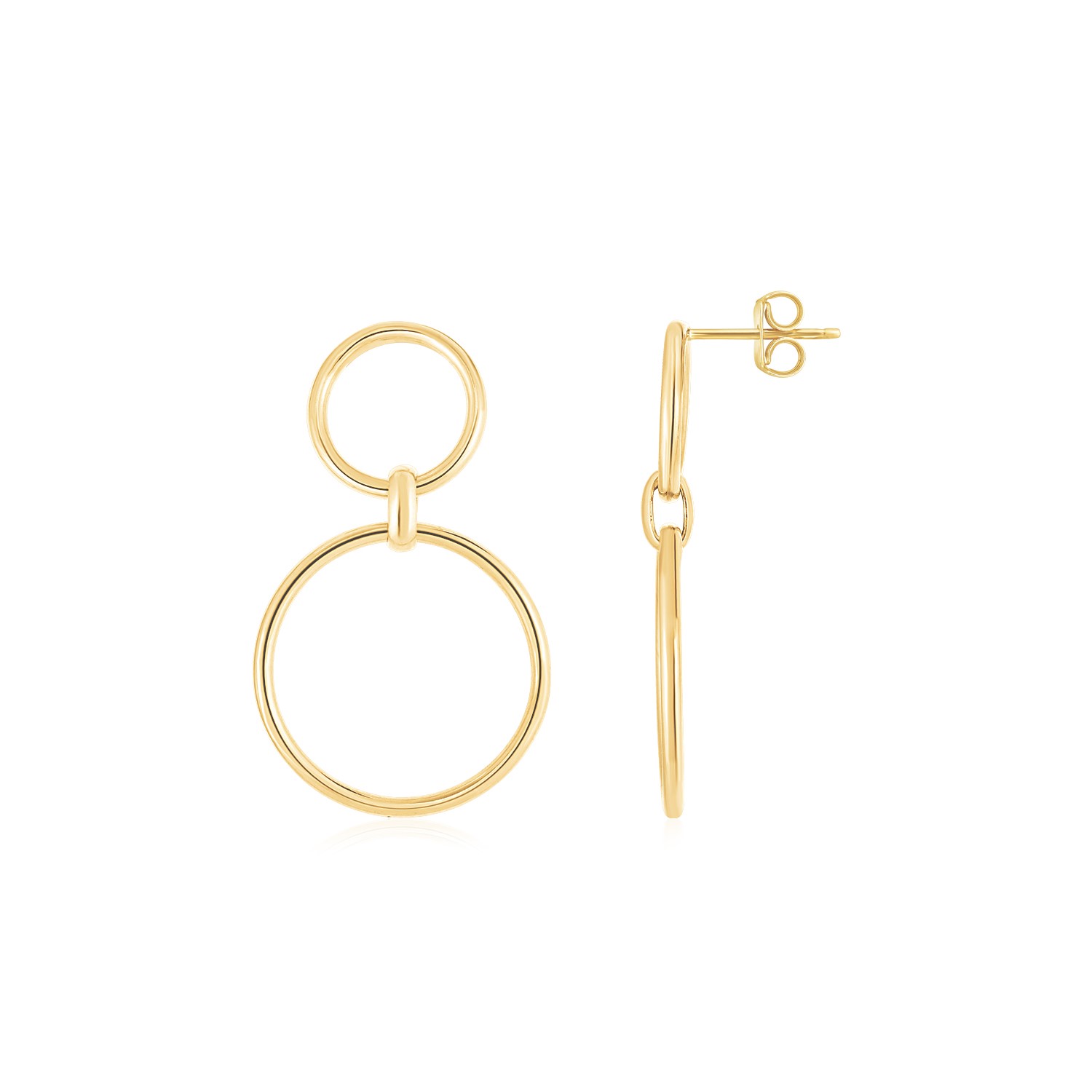 These Round Link Circle Drop earrings are the perfect balance of elegant & timeless. Perfect addition to any collection. Crafted in 14k yellow gold with a high polish finish & a push back closure.