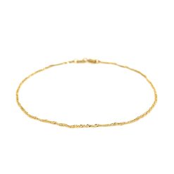 This Singapore bracelet comes in 14k yellow gold and has a width of 1.0 millimeters.