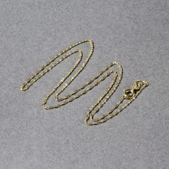 This Singapore chain comes in 14k yellow gold and has a width of 1.0 millimeters.