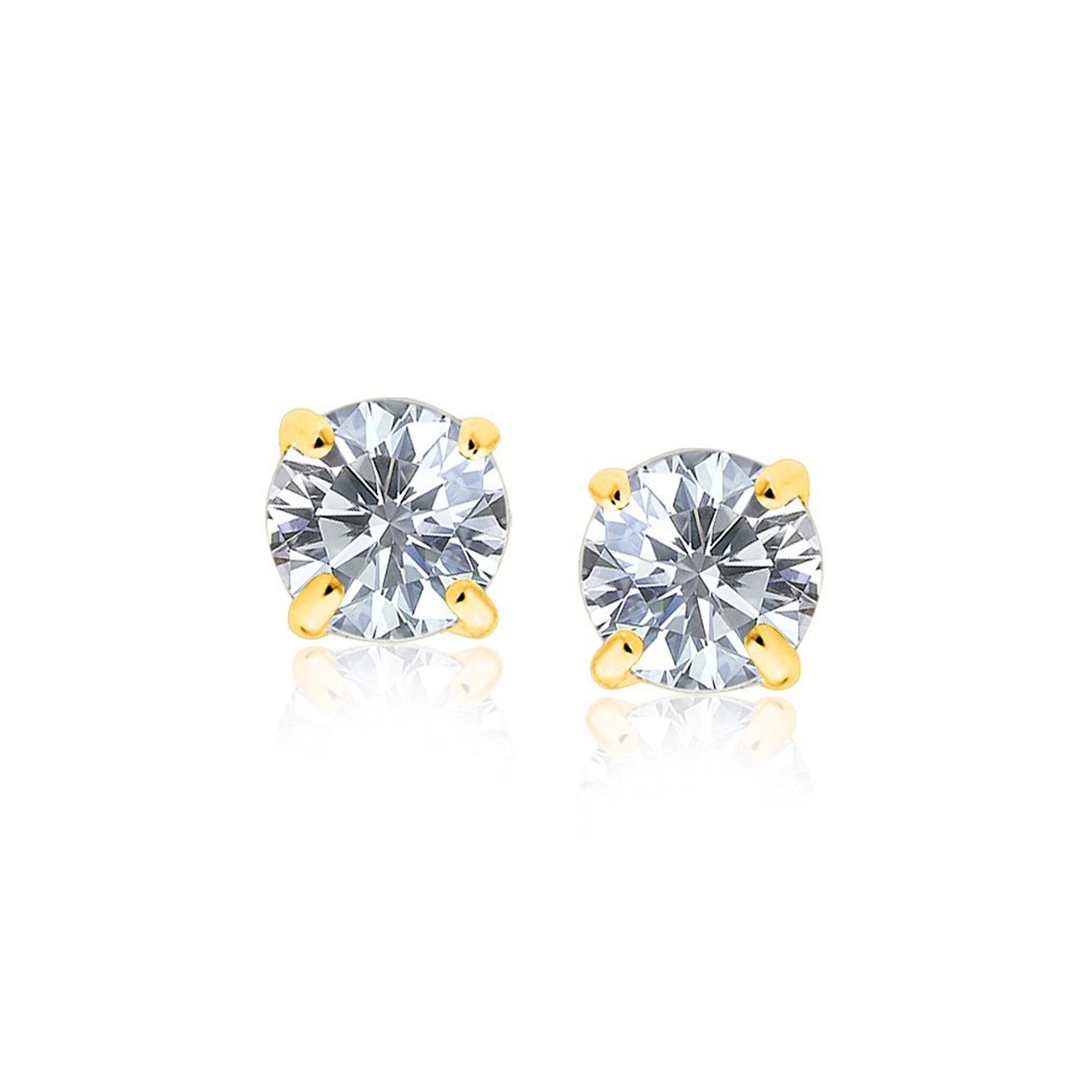 14k Yellow Gold Stud Earrings with White Hue Faceted Cubic Zirconia