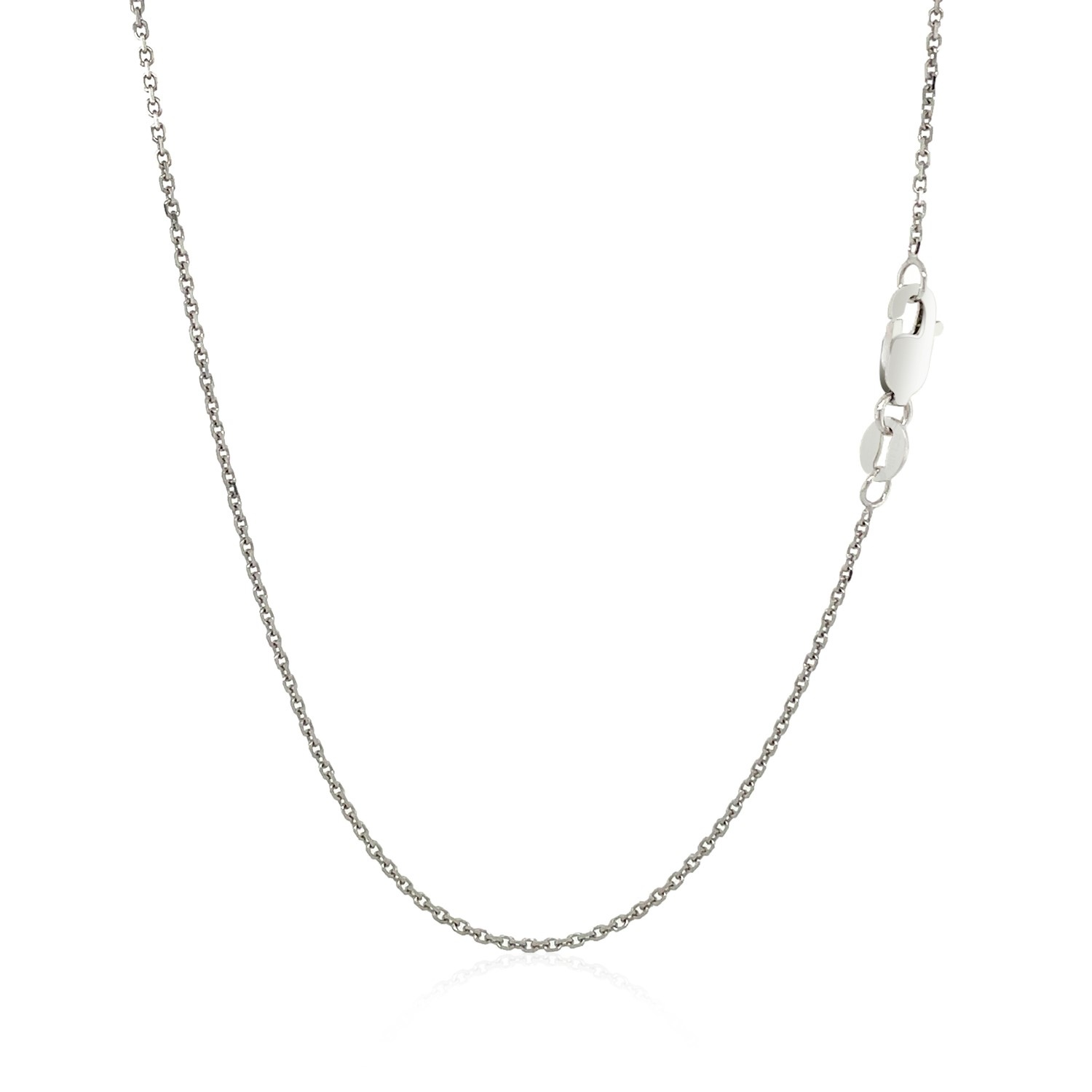 This cable chain comes in 18k white gold and has a width of 1.1 millimeters.