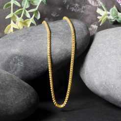 This solid diamond cut round franco chain comes in 14k yellow gold and has a width of 2.2 millimeters.