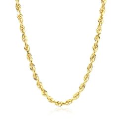 This solid diamond cut rope chain comes in 10k yellow gold and has a width of 4.0 millimeters.