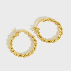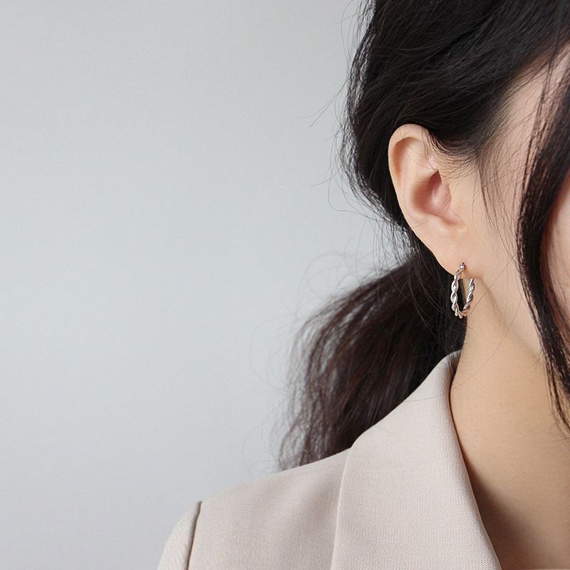 Casual Twisted Circle 925 Sterling Silver Huggie Hoop Earrings