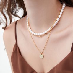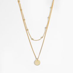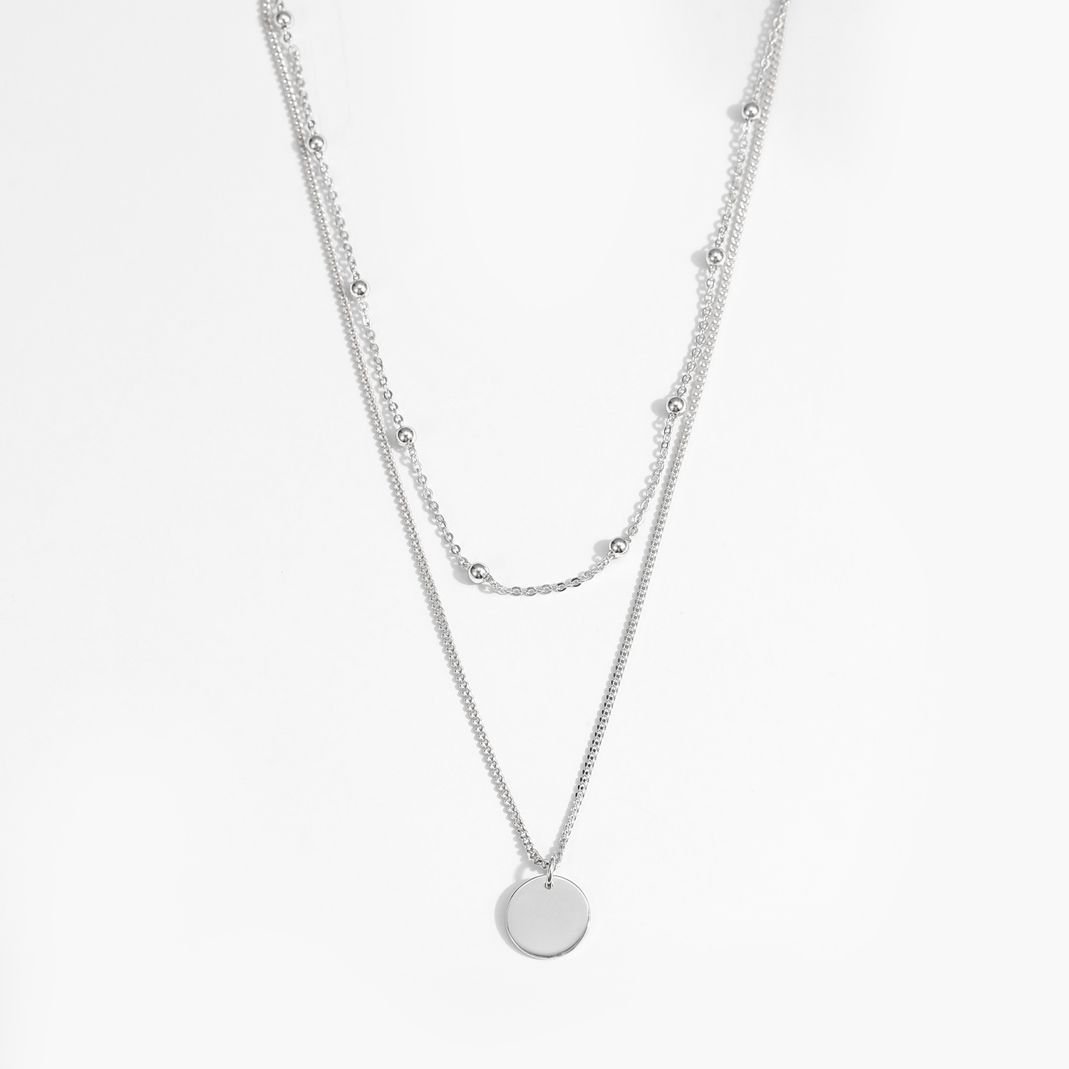 Choker Double Beads Chain Tag Coin 925 Sterling Silver Necklace