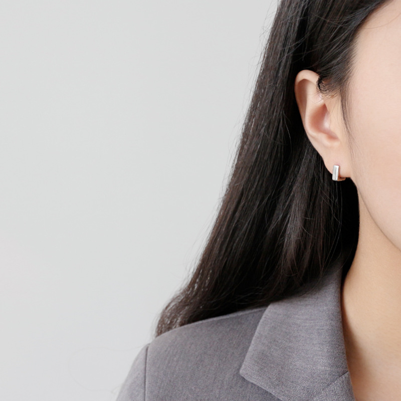 Classic Geometry Hollow Square 925 Sterling Silver Hoop Earrings