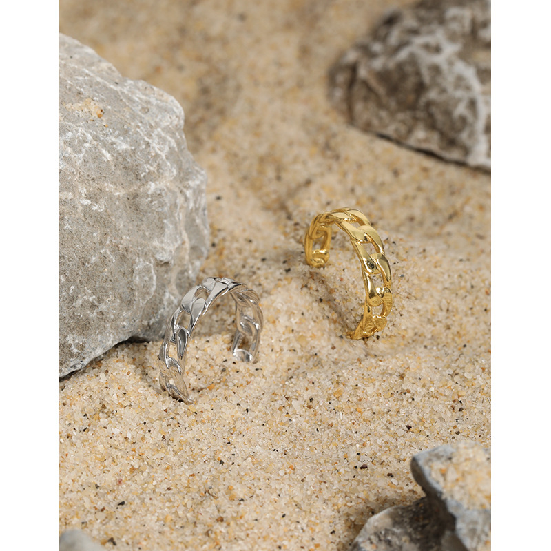 Classic Hollow Chain New 925 Sterling Silver Adjustable Ring