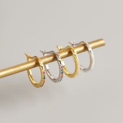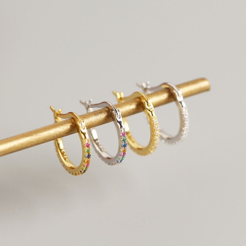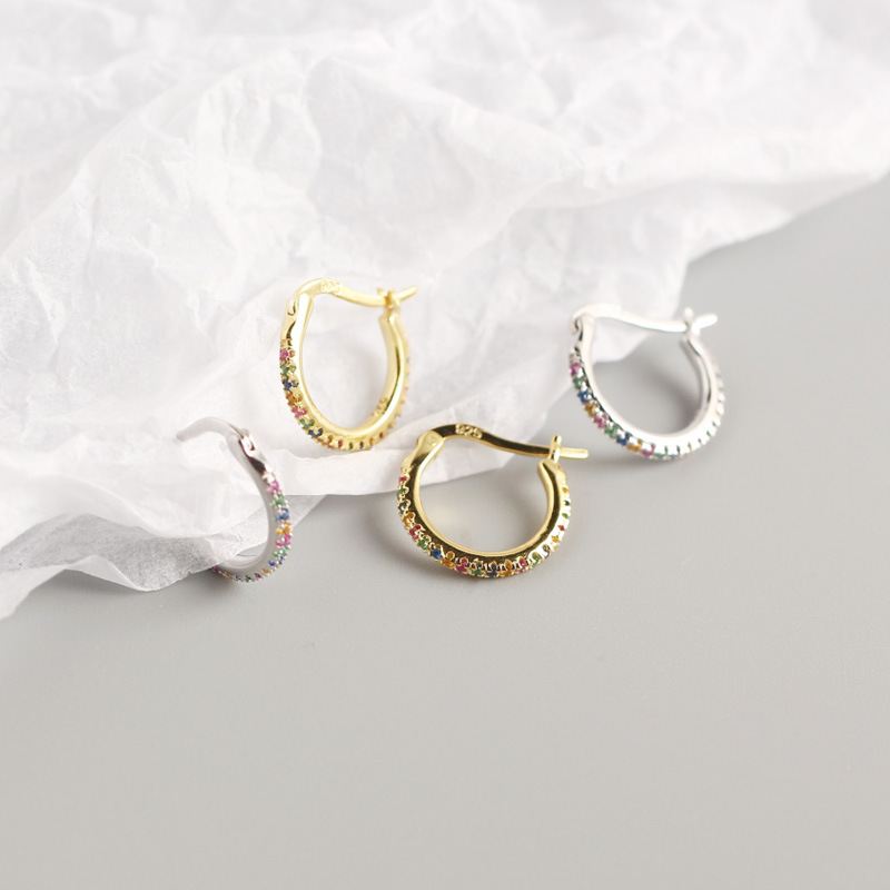 Colorful CZ Round Circle 925 Sterling Silver Hoop Earrings