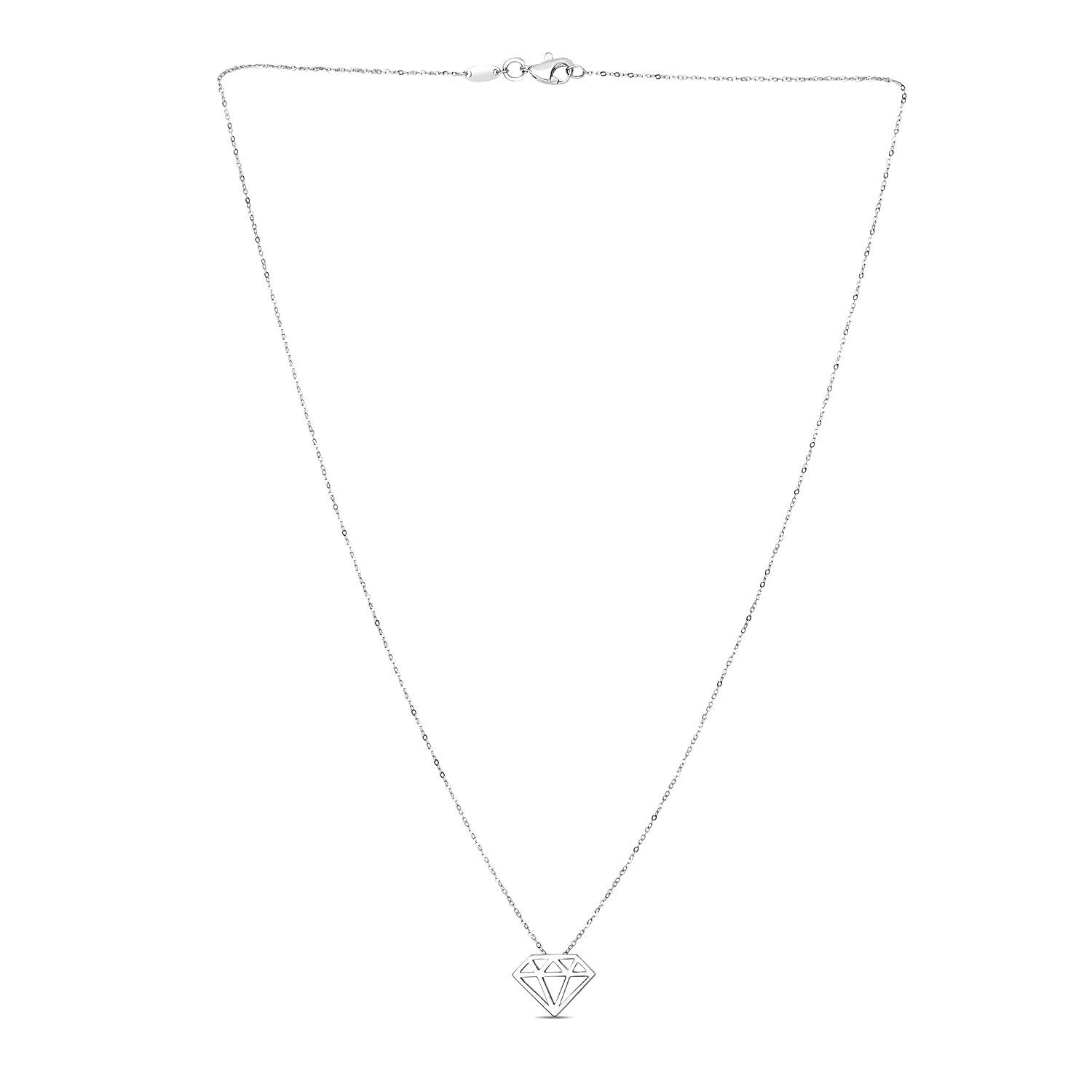 A beautiful symbol of elegance&44; this delicate white gold pendant features the geometric outline of a diamond. The pendant is 17 inches long and closes with a spring ring clasp.