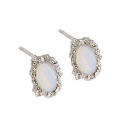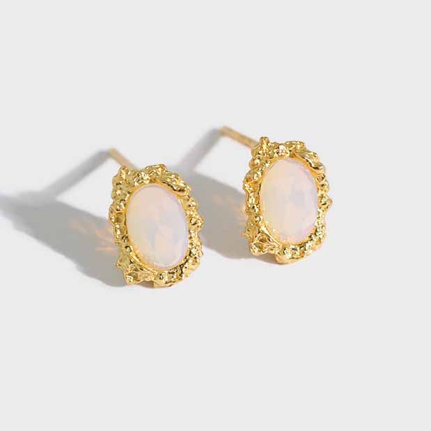 Elegant Oval Created Opal 925 Sterling Silver Stud Earrings