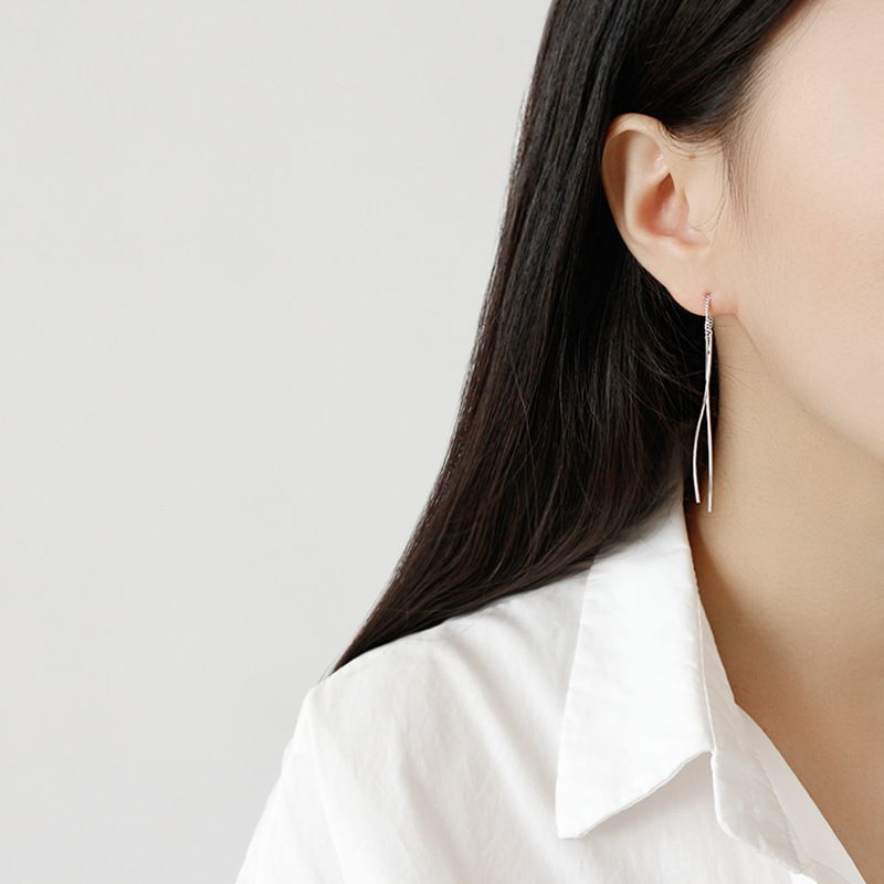 Elegant S Shape Lines Tassels 925 Sterling Silver Dangling Earrings