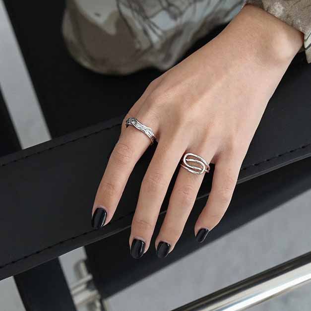 Fashion Irregular Texture 925 Sterling Silver Adjustable Ring
