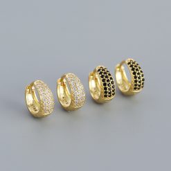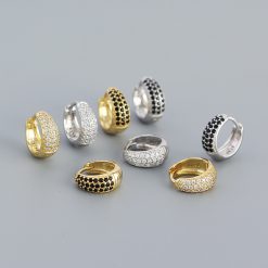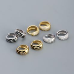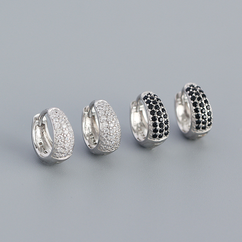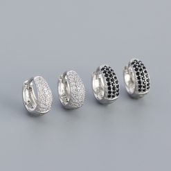 Geometry Micro Setting CZ 925 Sterling Silver Huggie Hoop Earrings