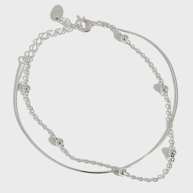 Girl Double Layer Beads Fashion 925 Sterling Silver Bracelet