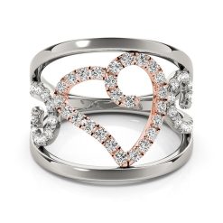 Heart Motif Filigree Style Diamond Ring in 14k White And Rose Gold (1/4 cttw)