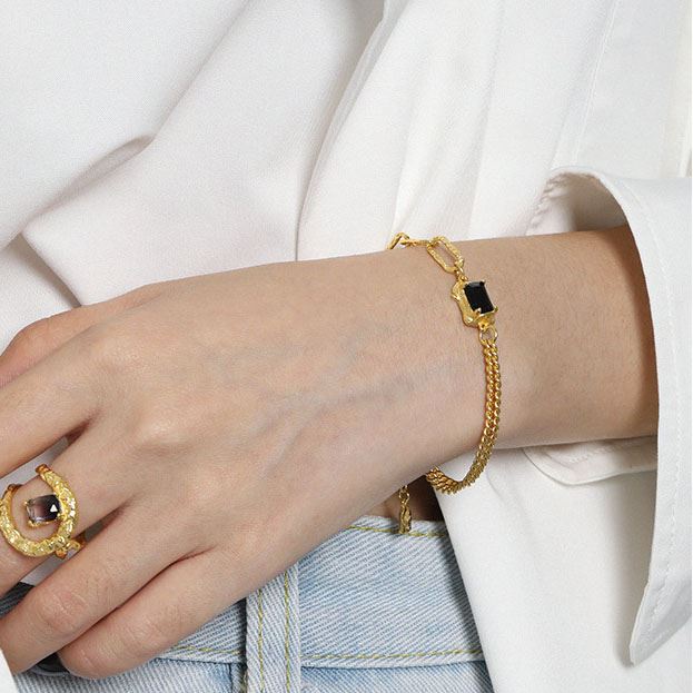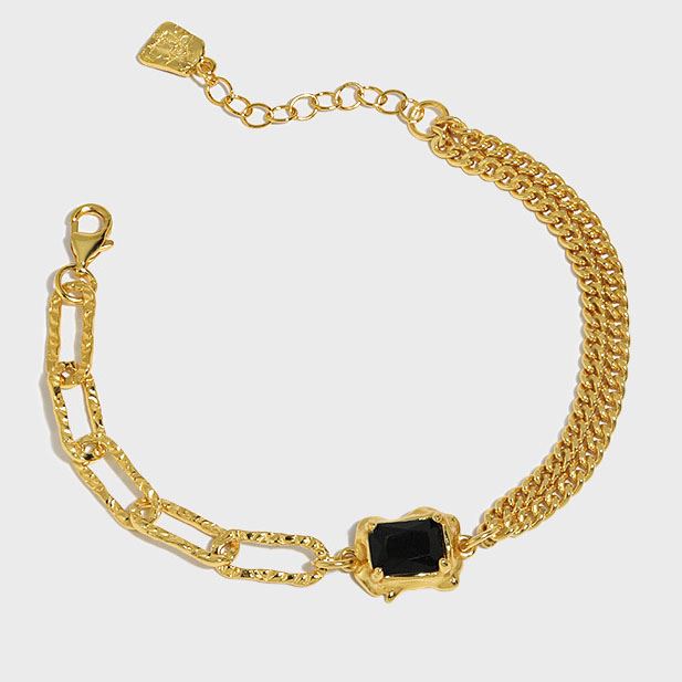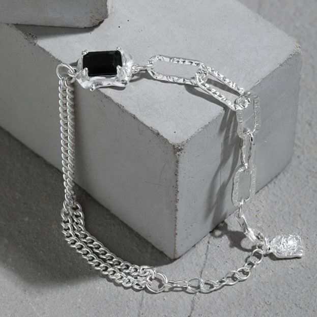 Irregular Geometry Baguette Black CZ 925 Sterling Silver Bracelet