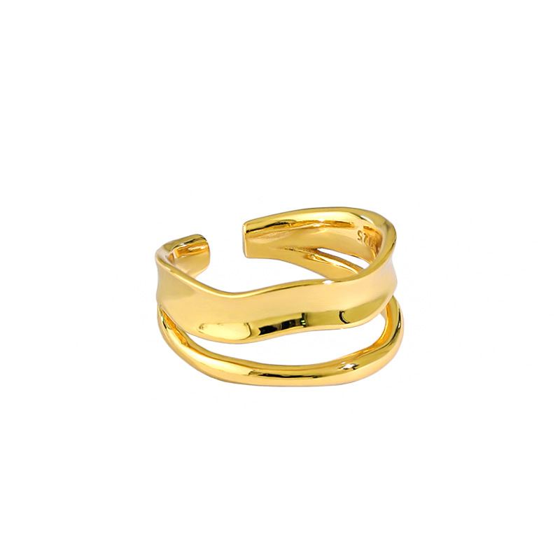 Irregular Lines Double Layer 925 Sterling Silver Adjustable Ring