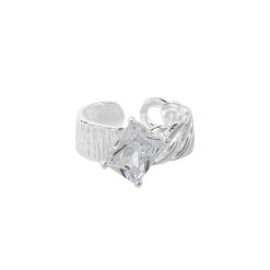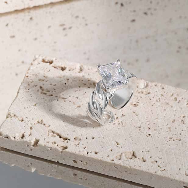 Irregular Twisted CZ Emerald 925 Sterling Silver Adjustable Ring